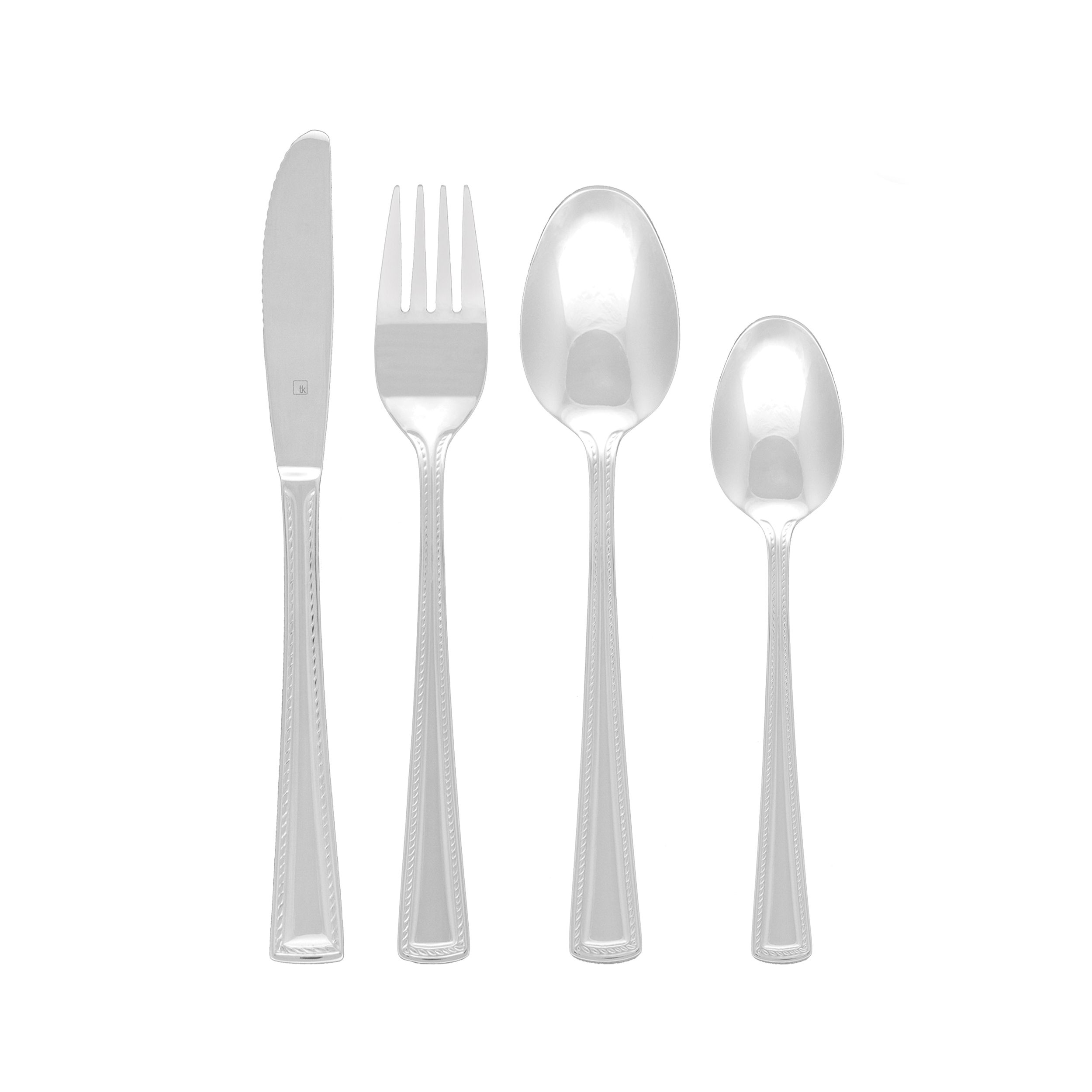 Featuring a delicate rope beading around the handles, Sorrento adds a touch of eclectic charm to the table. Its squared end, short fork tines and full bowls deliver a rustic appeal to the table.